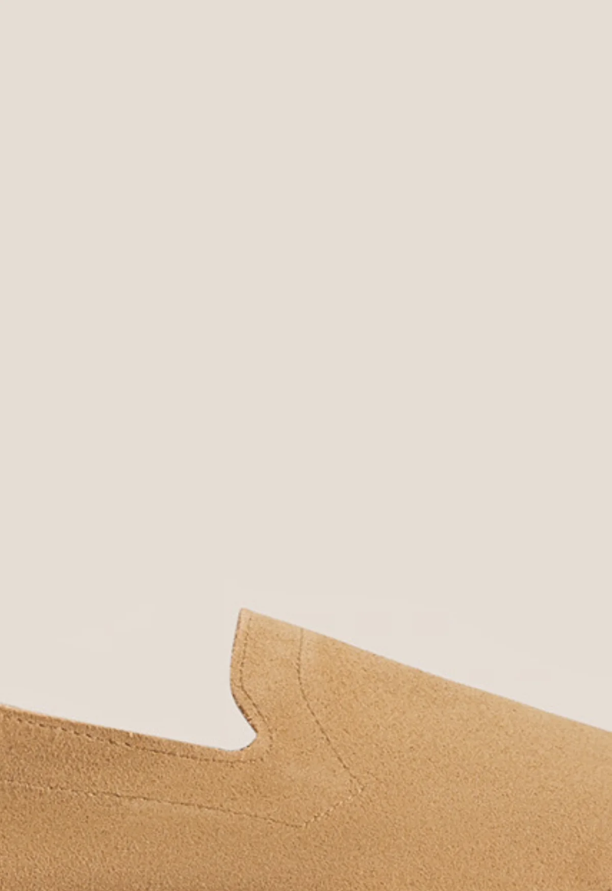 Alpargata estilo mocasín en ante de color capuccino. Suela de yute con acabado de goma antideslizante.