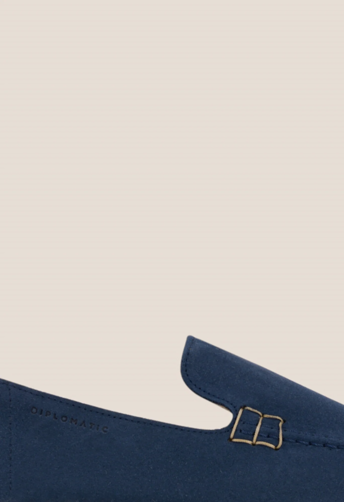 Alpargata estilo mocasín en ante de color azul marino. Suela 100% de yute.