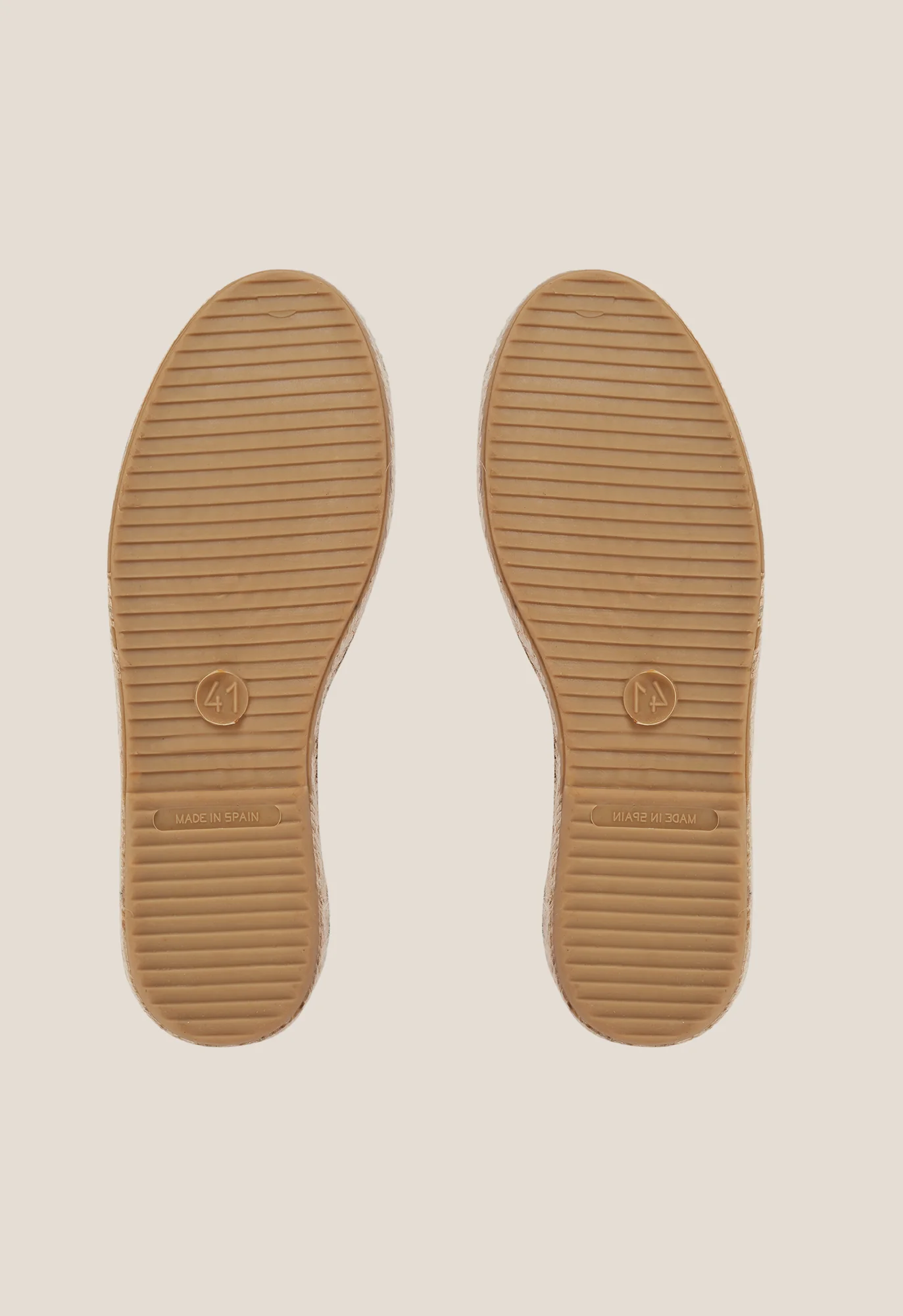 Alpargata estilo náutico de cordón en serraje de color lino pastel. Suela 100% de yute.