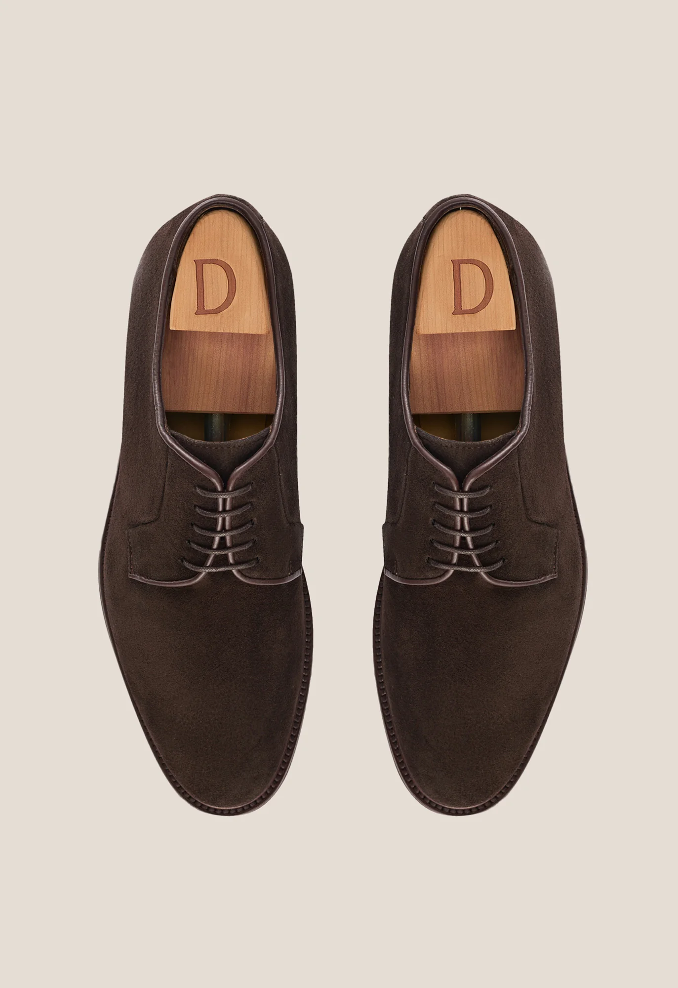 Zapatos blücher de cordón liso en ante color marrón chocolate. Suela de goma para una comodidad óptima.