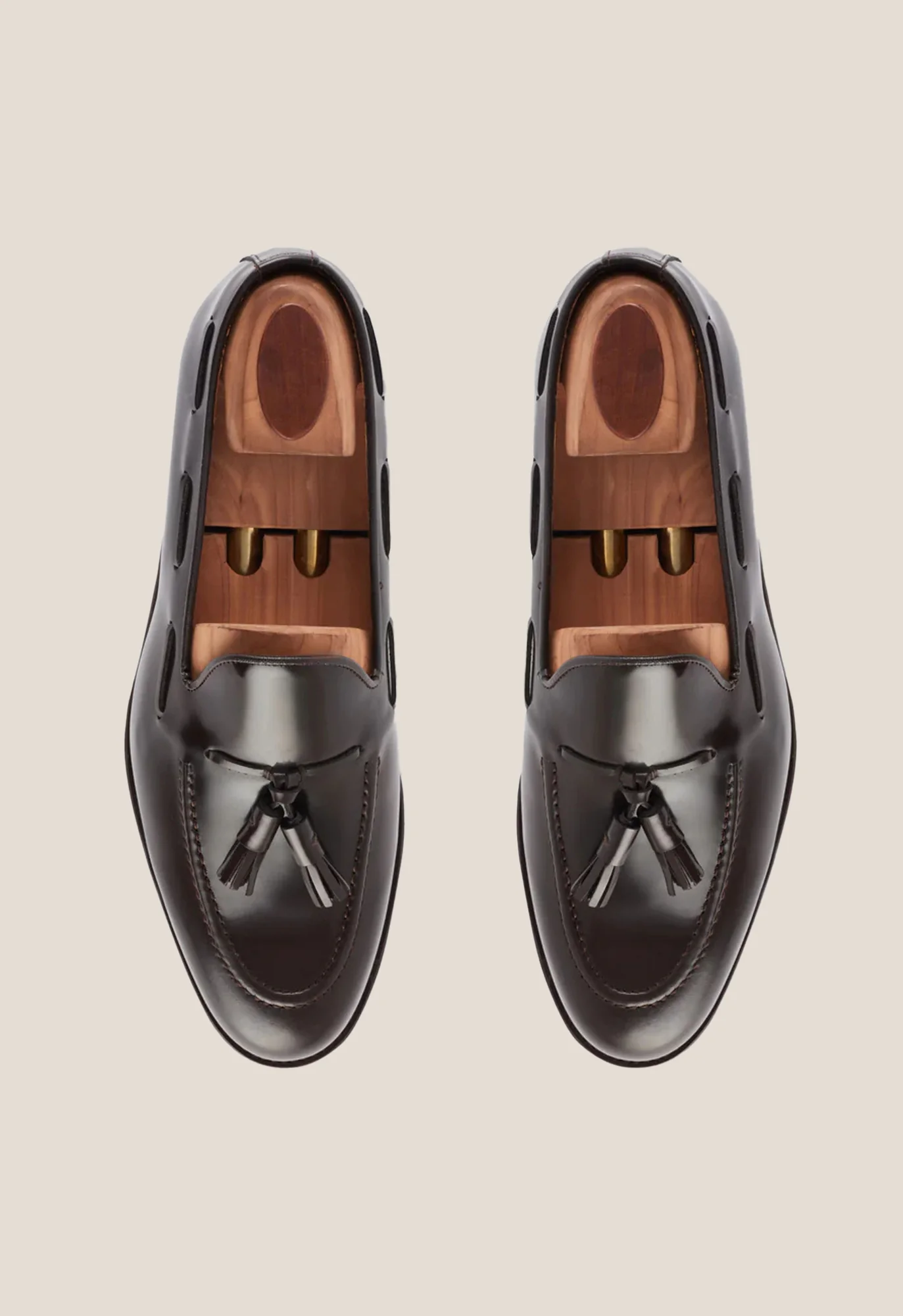 Mocasín con adorno de borlas en antic de color marrón. Horma estructurada para calce idóneo.